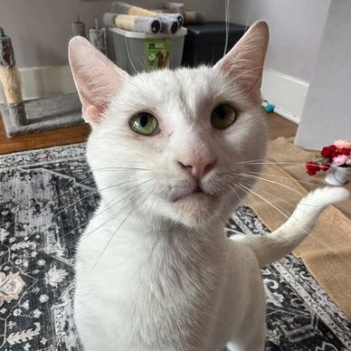 Rescued from a hoarding situation and very ill at first, Lychee has made an amazing recovery and is now truly thriving. This gentle girl has the softest heart and a constant purr that never quits. Her affectionate personality makes for the best snuggles! She’s ready to bring joy to a home that will cherish her as much as she’ll cherish you.